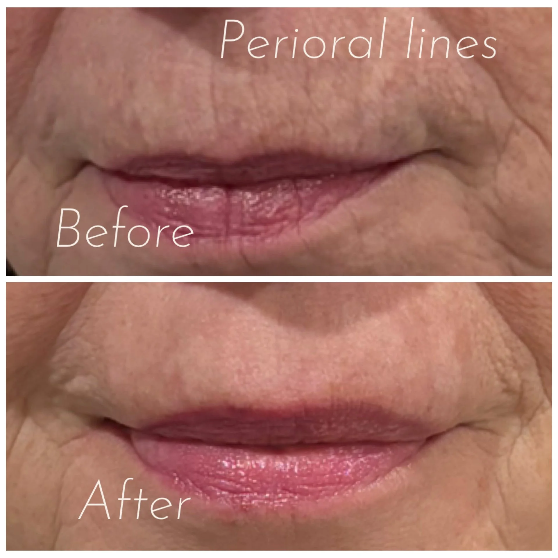 Rellene sus líneas periorales (líneas verticales sobre los labios) con un tratamiento de relleno específico. Este tratamiento aborda específicamente las líneas finas que pueden desarrollarse alrededor del área de la boca.